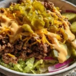 Serve your cheeseburger bowl with a side of crispy baked sweet potato fries for a delightful crunch. If you’re feeling like a little indulgence, pair it with a milkshake or fresh iced tea for a fun, all-American meal experience.
