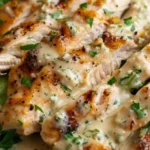 This dish is not just about being quick to prepare. The magic happens as the Caesar dressing melds with the savory garlic, forming a robust, creamy sauce that infuses the chicken — each bite bursts with flavor. Plus, who can resist the golden, crispy layer of Parmesan on top? Whether you’re serving it for a busy weekday meal or a casual dinner party, this Baked Caesar Chicken will shine.