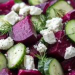 A vibrant and refreshing beet salad that combines roasted beets, crunchy cucumbers, creamy feta, and fragrant dill.