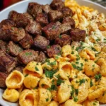 Imagine tender, succulent bites of steak, generously seasoned with zesty Cajun spices, mingling in a pot of rich, gooey, cheesy pasta. This dish is not just food; it’s an experience. From the first bite, your palate is treated to a delightful dance of flavors—a perfect fusion of spice and comfort. The creamy garlic shells play off the hearty steak perfectly, creating an unforgettable meal that’s ready in just half an hour. Perfect for busy weeknights or casual gatherings with friends, this dish will quickly become a favorite!