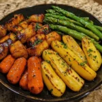 A delightful medley of spring vegetables roasted to perfection with a sweet brown sugar glaze, perfect for any Easter gathering.