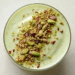 A delicate and creamy pistachio milk pudding, evoking warm memories and rich flavors.