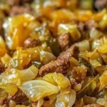 A comforting one-pan meal of sautéed beef, onions, and tender cabbage, perfect for family dinners.
