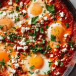 A vibrant and hearty Middle Eastern dish made with eggs poached in a rich, spiced tomato sauce, perfect for brunch or dinner.