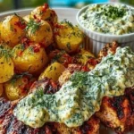 This dish showcases the harmony between spicy and creamy, transforming ordinary chicken into a succulent masterpiece. The yogurt marinade envelops the chicken breasts, infusing them with moisture and flavor, while the crisp baby potatoes provide the perfect textural contrast. Topping it all off with a drizzle of Dill Feta Cream adds a fresh and tangy brightness, making every bite an explosion of taste. You’ll find it hard to resist going back for seconds!