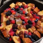 A delightful twist on classic French toast, featuring a medley of strawberries, blueberries, and raspberries in a fluffy baked dish.